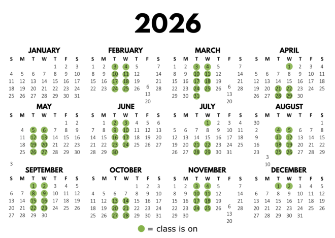 Classes take a break during school holidays.